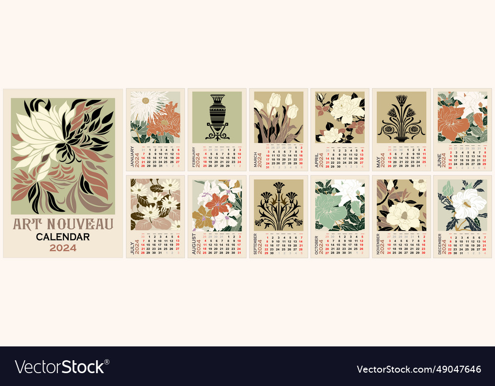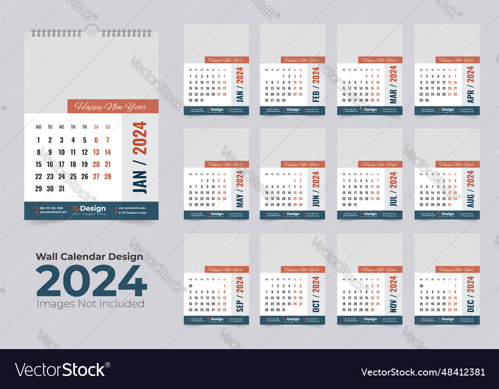 Monthly calendar template for 2024 year 12 pages Vector Image