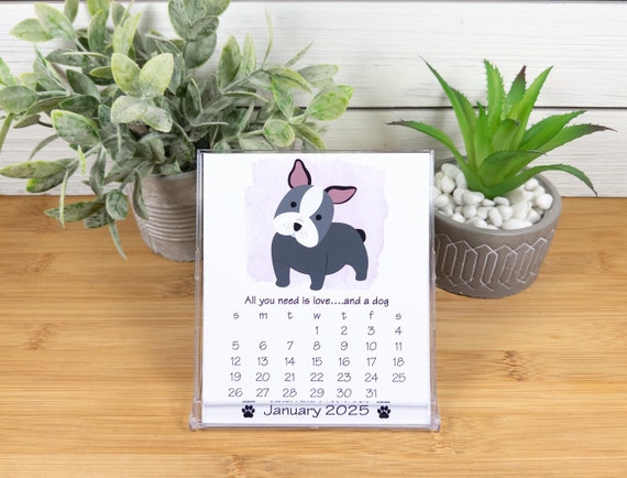 2025 Dog Lovers Desk Calendar, 12 Month Calendar With CD Case