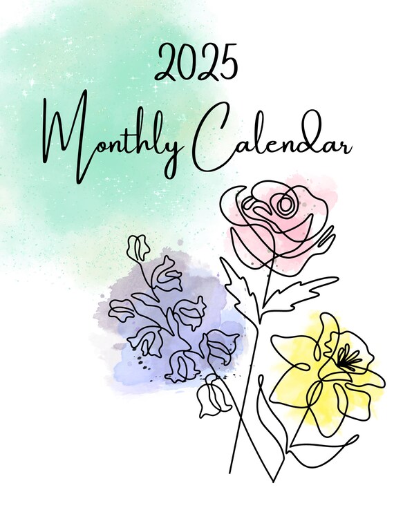 2025 Monthly Printable Calendar, Birth Flower Calendar, Clean Font